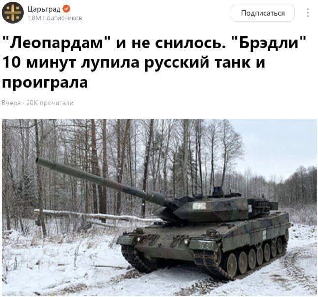 Цитата (Nechriste @ Янв 18 2024, 15:04) "танкует боком...конец печальный" Видимо экипаж сьебался не далеко (или не весь) Чому ж сумний, кацапня?)))) https://t.co/FBcIMOe0xk pic.twitter.com/IfZezpU85f— hochu dodomu v UA (@hochu_dodomu) January 18, 2024 Для наиболее тупой ваты есть и более лудшая версия! пруф https://tsargrad.tv/news/leopardam-i-ne-sni...roigrala_947044 ![]() -------------------- Такие как ты исподтишка тролят патриота © Madiev.
