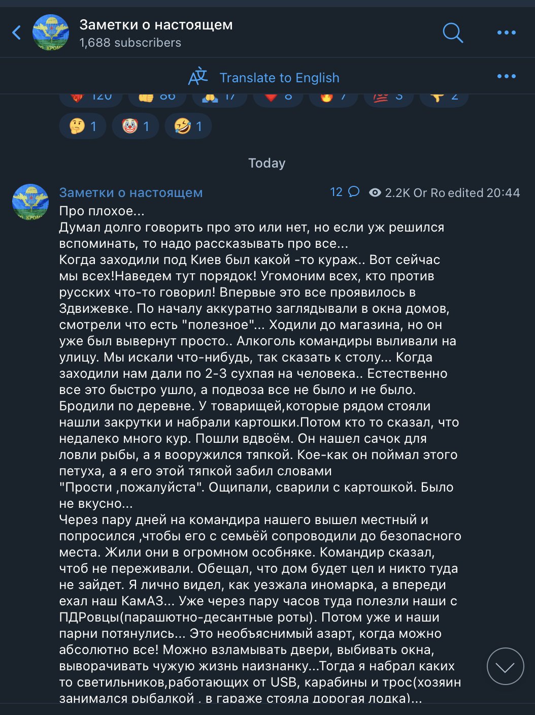 Цитата (gundos @ Фев 27 2024, 10:20) Неунывающие двдшники вспоминают о лихом гусарском начале увлекательного похода. Там продолжение тоже интересное. Цитата Потом уже это вошло в норму. Просто заходишь в любой понравившийся дом, как в Попасной,в которой никого не было из мирных практически.. Или спрашиваешь местных, где хозяева дома, как было на Херсонщине, Запорожье и в Кременной... Если говорят, что уехали на Украину или воюют за ВСУ , то дверь вышибается и этот дом становится уже нашим... Можно бесконечно долго рассказывать про воина-освободителя, но в каждом человеке на войне просыпается варвар... И чем больше потерь, тем больше думаешь, что делаешь все правильно.. Под Херсоном на вопрос "Что вы делаете тут?" я отвечал "Не х.й было трогать русских! "... С этим нам и жить Хотя, ничего нового. В пешмергу, мусарню и ФСИН идет только всякий сброд. |