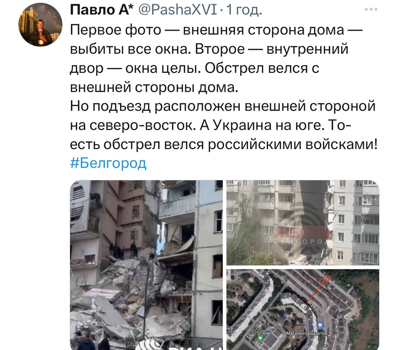 Цитата (serafim @ Сегодня, 14:34) это что такое могло сложить подьезд? Град или химмарс вряд ли, бпла сомнительно. Хаймарсы по территории рф не применяют.КАБ или тяжелая ракета ПВО. А может белгородский сахар, или даже бытовой газ. |