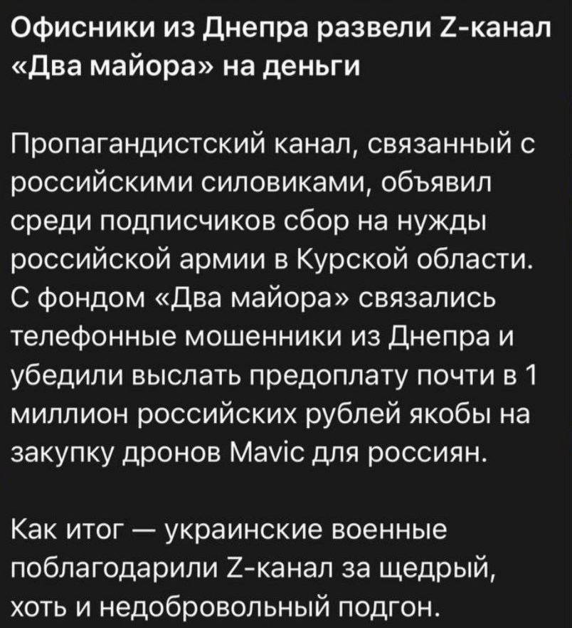 Цитата (Мамаша Кураж @ Авг 22 2024, 09:07) https://t.me/warspeople/5280[/URL] Вам привет от Михалыча.А у него не тока Телеграмм но и Форум есть! ....... Однако хочу разобраться как появился "лом в жопе" который мы ныне и наблюдаем. Откуда ЖОПА? Родилась эта идея в голове человека всю жизнь короеда: Служил в охранке и был верующим глубоко скрывая эту самую веру. А когда Родина его испускала уже дух пожранная подобными короедами(так их и называли) то перебрался к новым хозяевам. А там все паразиты. Так что когда в Стамбуле договарился о войне с Украиной только на половине общей границы то подобное не показалось ему бредом..... И неустойчивый мир был тут от белорусской границы до Харькова аж 2,5 года. Собственно ситуация выгодная украм ибо им можно тут силы не держать так как русские сами отступила отдав половину уже захваченного т е наступать не будут. А вот откуда у Москвы уверенность что укры не вдарят в незащищенное место? Ведь держать тут силы глупо если "Договор"! Так что Укры владели политической инициативой уже с момента провала СВО в марте 2022г. И вот решили нанести удар под дых в момент когда заговорили о тупике в войне. Для Украины это не тупик а путь к Победе.Это для тех кто тянет время просиживая его без дела "срок за сроком"....для тех да -"шах и мат" потом. Так что в ближайшие месяцы мы увидим главный фронт именно тут! На месте договорнячка. Ибо война не терпит закулисы пожирая все ресурсы. Кто задумал перепрыгнуть пропасть в два прыжка тот сами понимаете...... Но ОН и не думает прекращать эту свою гибельную политику. Газ качают ... Это наш ДЕНИС МИХАЛЫЧ -------------------- Такие как ты исподтишка тролят патриота © Madiev.