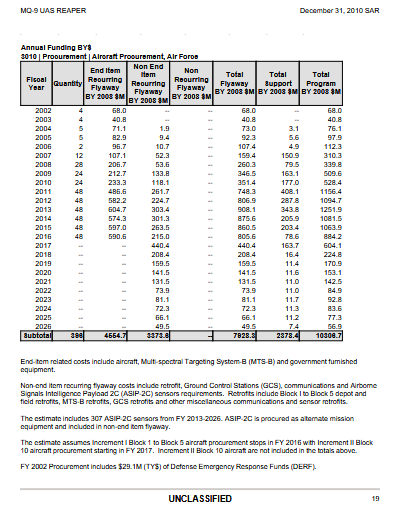 Цитата (Nechriste @ Сегодня, 19:29) Стоимость собственно БПЛА - это End Item Recurring Flyaway. Делишь сумму на количество аппаратов - получаешь стоимость (до 2009 года наверно реальную (судя по дате выхода отчета), дальше - очевидно прогнозную). Тут правда цены в долларах 2008 года, в текущих ценах на предыдущей странице. А если пытаться высчитать стоимость самолета деля всю стоимость программы (включая наземку, запчасти и обслуживания с ремонтами) на их количество, как ты дебил пытаешься - Су-34 будет лямов 200 стоить Нет, дебил. Non-end включает модернизацию также и бортовых датчиков, кроме GSC Когда у тебя литак упал, теряются все затраты на него, кроме наземной компоненты, которая отдельной графой. И смотреть надо среднюю затраченную сумму за все годы, а не выбирать удобный для себя год. Цитата (Nechriste @ Сегодня, 19:29) А если пытаться высчитать стоимость самолета деля всю стоимость программы (включая наземку, запчасти и обслуживания с ремонтами) на их количество, как ты дебил пытаешься - Су-34 будет лямов 200 стоить. Не нада пытаться. Есть контракты. Туда входит всё. Как, собсно, а случае с рипером. И эта сумма по разным данным - 30-50 млн. На рипер, как видно, сумма доходит до 150 З.Ы. Кстати графу total support тоже надо учитывать. Это, собсно, средства затраченные на поддержку всего этого хозяйства в процессе эксплуатации. И, если эти средства затрачены, а потом машину сбили, эти средства также потеряны. |