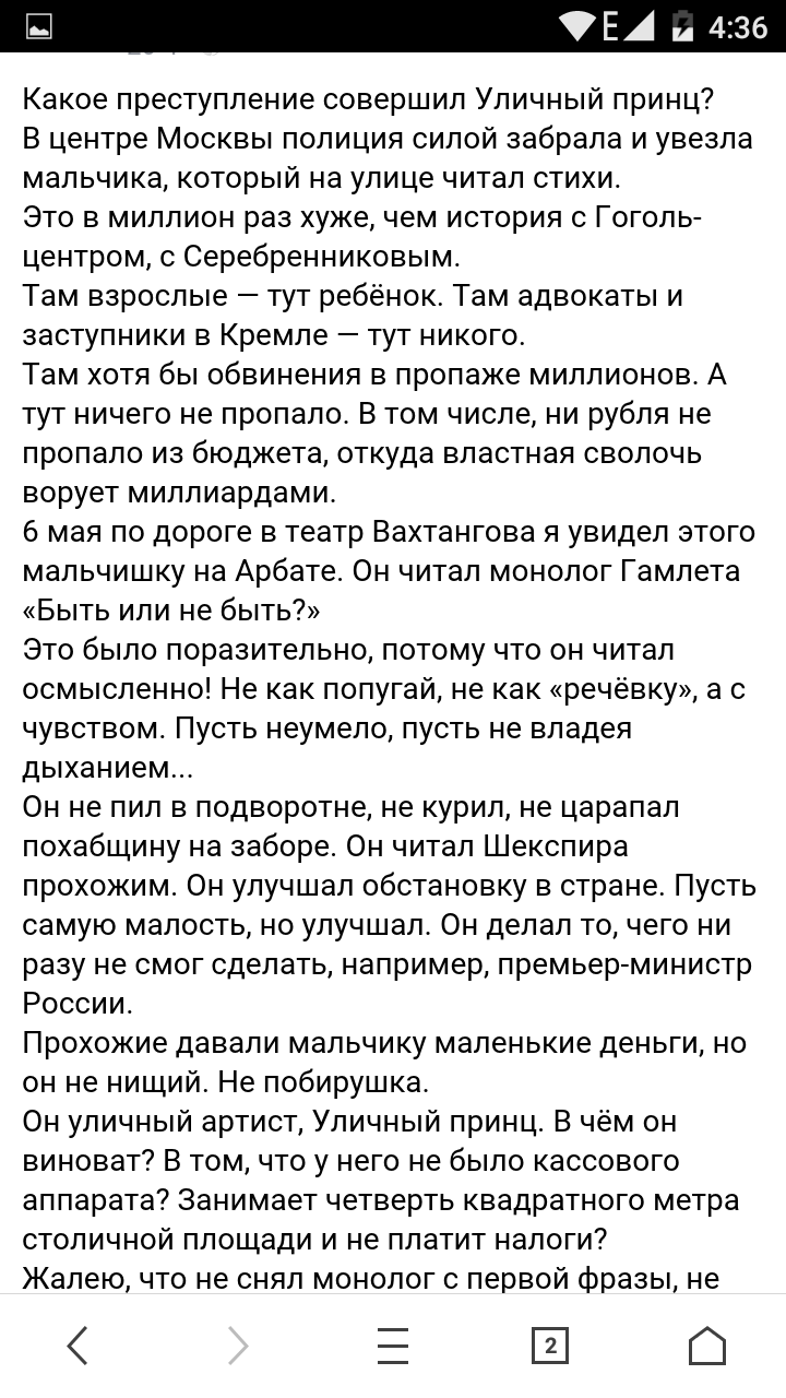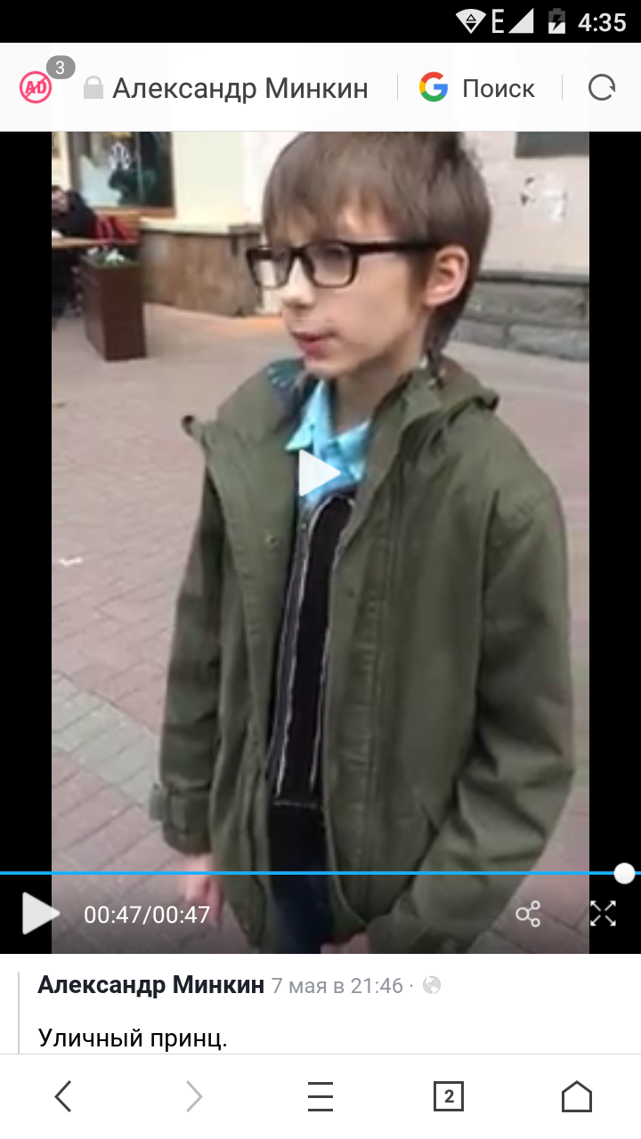 Цитата (ssvblr @ Май 28 2017, 04:08) А с чего вы так упрямо утверждаете , что он занимался попрошаничеством ? Есть доказательства? Ну что ты, откуда? По словам отца, они просто прогуливались, мать села почитать книжку, а ребенок внезапно встал и начал читать Гамлета. Ну, порыв у него такой. Обрати внимание на дату. 6-го мая у него, видать, тоже был порыв. Нажмите для увеличения -------------------- К несчастью, мир сейчас не таков, каким был раньше. Дети