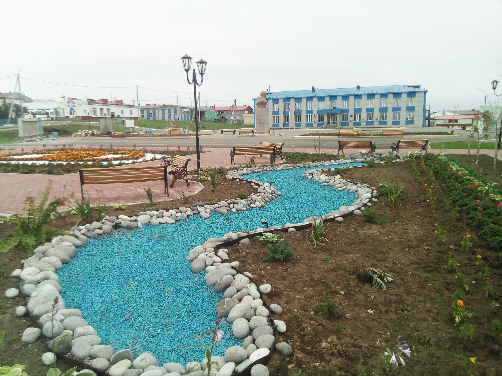 Площадь Ленина со сквером у нас не пафосное место, как в больших городах, а полностью отданы на откуп детям. Эдакая огромная детская и спортивная площадка. Когда-то просто пустырь был при коммуняках. На отлично асфальтированной площади катаются дети на роликах велосипедах и гиробордах всяких. В сквере детская площадка с горками и всякой фигней, там младшая группа угорает, на лавочках сидят мамы или папы, смотрящие за детьми дальше за сквером спортплощадки и каток, который летом теннисный корт и футбольная площадка.