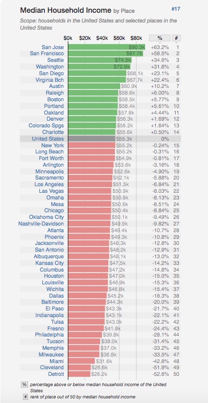 Цитата (Сурт @ Апр 8 2019, 20:16) Странный график, очень странный. Что Фриско и Сиэтл места пафосные и дорогие, то всем известно. Там обретаются товарищи вроде Безоса и прочее айти. Если уж на то пошло у нас это должна быть Сибирь, а не Москва Но Майами третий снизу? Рили? https://statisticalatlas.com/United-States/Household-Income 31 k Хотя где-то пишут что 44 где -то 50 хер поймешь как считают, и что берут за территорию. Вроде понял 31 k средней в год это по территории (город с пригородами) а если брать сам Маями (только город) то уже 44 -50 k -------------------- Красный цвет - цвет администрации. © Pampa