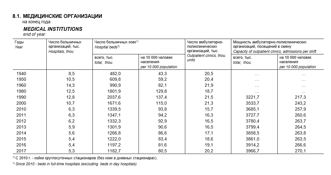 ![]() Правильность данный можно проверить на сайте Росстата. http://www.gks.ru/bgd/regl/b18_13/Main.htm раздел "Российский статистический ежегодник.2018" и затем подразделы "Образование" и "Здравоохранение" ЗЫ Я не проверял. -------------------- Ценность любого оружия определяется успешностью его применения и готовностью к использованию в нужном месте и в нужное время.