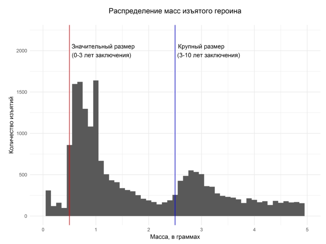 Цитата (Retwizan @ Июн 16 2019, 09:09) В данном источнике нет указанных таблиц (распределение масс изъятого наркотика). Первоисточник их я привел. Там нет тех графиков, но данные они использовали те же самые. А что это за данные, откуда они взяты и как обработаны - хорошо описано. Пара цитат: В России для учета преступлений, уголовных дел и лиц, их совершивших, заполняются документы первичного учета (статистические карточки, далее — статкарточки), предусмотренные Положением о едином порядке регистрации уголовных дел и учета преступлений: • на выявленное преступление (Форма 1); • о результатах расследования преступления (Форма 1.1); • на лицо, совершившее преступление (Форма 2); • о движении уголовного дела (Форма 3); • о результатах возмещения материального ущерба и изъятия предметов преступной деятельности (Форма 4); • о результатах рассмотрения дела в суде (Форма 6). Каждая статкарточка — это отдельный (бумажный) бланк с большим количеством полей: номер уголовного дела, название органа, который выявил преступление, квалификация преступления, предмет преступного посягательства, информация о потерпевших и так далее. Эти поля заполняются согласно шестнадцати справочникам. Например, чтобы вписать, какой именно наркотик был изъят, необходимо указать его код, взятый из Справочника No8 (в котором перечислены все наркотические средства и их присвоенные им коды для целей статистического учета). Статкарточки заполняются следователями и дознавателями всех органов, имеющих полномочия расследования уголовных дел, и утверждаются прокурорами. Затем данные статкарточек переводятся в электронный вид и поступают в информационные центры МВД России. Исходным массивом информации для создания базы данных для анализа явился унифицированный срез деперсоницифированных данных, сформированный на основании отчетных срезов комплекса «МОСТ-Р» за 2013 и 2014 годы. Унифицированный срез содержит данные, аккумулированные информационными центрами при территориальных органах МВД России, поступившие от органов, уполномоченных расследовать уголовные дела, за отчетный период. Так что совершенно не понимаю твоего неверия. МВД уже фактически подготовило все данные, ребятам оставалось скачать и обработать. |