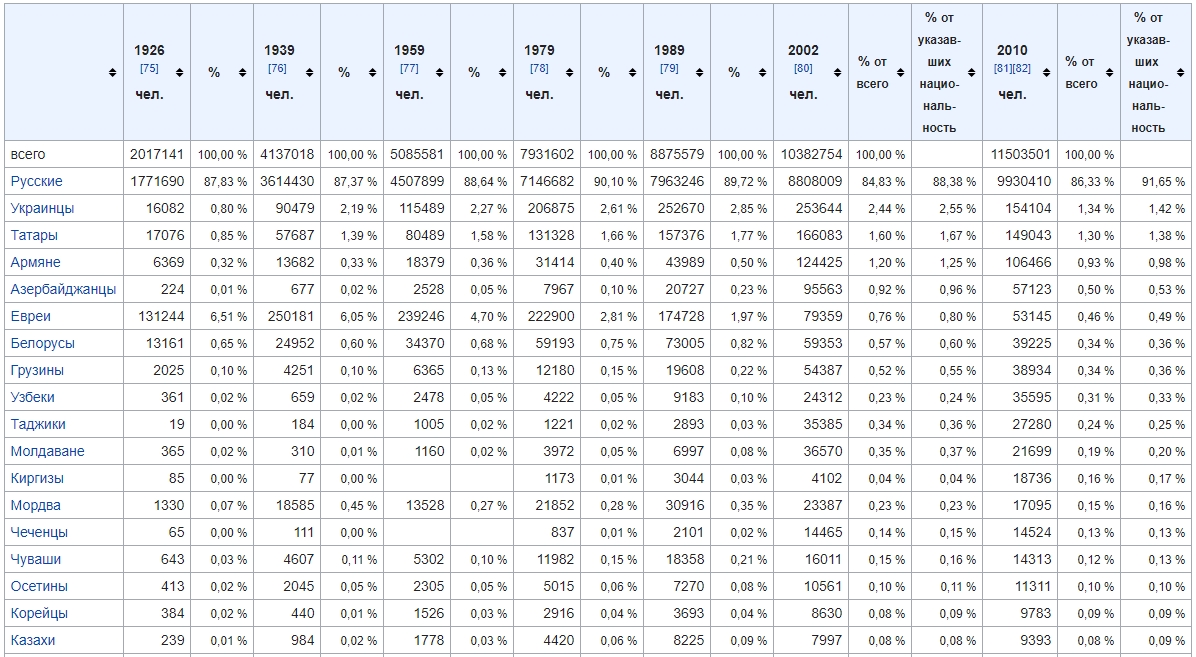 Цитата (12th @ Сегодня, 22:00) А разве в Москве и правда непропорционально много представителей нетитульной нации? Лично мне в 2013 именно это и показалось, чисто визуально. День города был тогда. Особенно контрастно это выглядело по сравнению с Киевом, откуда собственно я в Москву и приехал Сложно сказать, много или нет. Перепись (правда, старая - 2010 г.) ничего подобного не показывает. ![]() Цитата (fahed @ Сегодня, 22:25) Хм, а вы при разборе не забыли упомянуть, что Якутия - это 3 млн кв км2 пиздицевой землицы? А не 16 тыс? Что В Якутии возводят такие важные общенациональные проекты типа Амуро-Якутской жд - а это конечно не так важно, как самая большая мечеть в европе с охуенно дорогой люстрой? Сколько нужно для оплаты и дотирования ЖКХ на такой территории? При этом Якутия значит получает в 1,5 раза больше только. Хм.. А вы почему не хотите упомянуть, что население Чечни почти полтора миллион человек, а Якутии меньше миллиона? Да и Якутия - мировой центр добычи алмазов, в отличие от. Да, мечеть в Грозном, ЕМНИП, строилась за счет частных инвестиций, а не за счет бюджета. Или мне память изменяет? -------------------- Ценность любого оружия определяется успешностью его применения и готовностью к использованию в нужном месте и в нужное время.