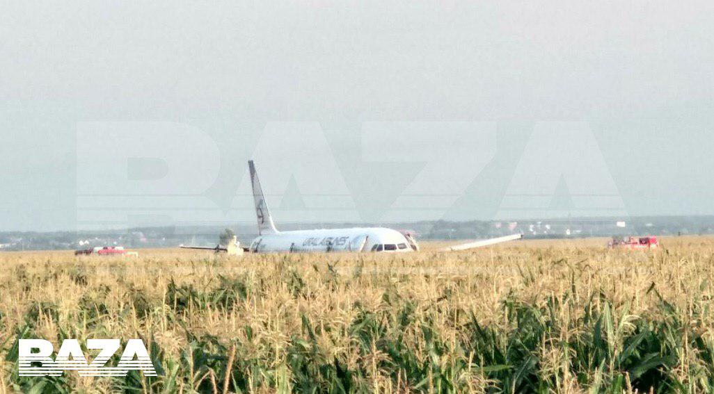 Cамолет «Уральских авиалиний», летевший из Москвы в Симферополь, совершил аварийную посадку через пару минут после взлета. По предварительным данным, в двигатель залетели чайки. На борту находились 226 пассажиров, вместе с экипажем — 233 человека. Пострадали десять человек, в том числе четверо детей. Никто из них не получил серьезных травм. Самолет посадил пилот, КВС Дамир Юсупов. Он же руководил первичной эвакуацией людей по кукурузному полю