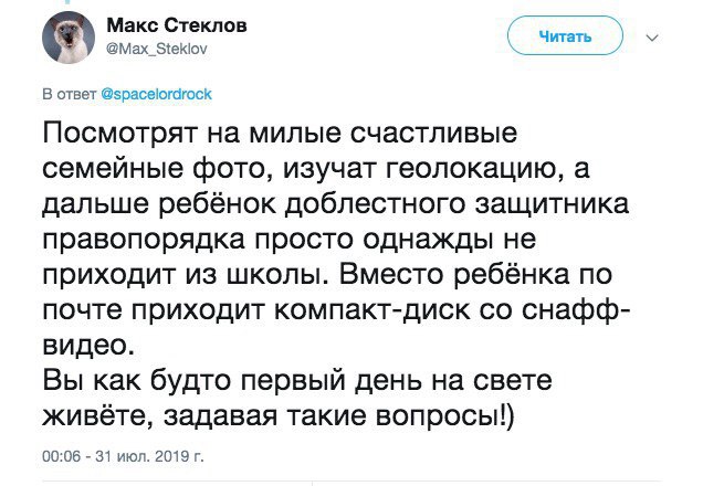 А вообще как работают менты по политическим делам, очень хорошо по краснодарскому кейсу видно: https://zona.media/online/2019/09/03/benyash-21 Процесс превратился в то, что защита просто возит обвинение мордой по полу, это полный позор для полиции и прокуратуры. Правда, конечно, не факт, что на суд это как-то повлияет. Потому что если оправдают, это надо против ментов возбуждать дела же, а кто на такое пойдет. |
