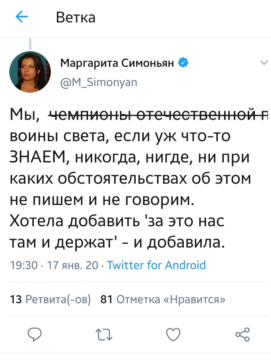 Цитата (A.L.X @ Янв 16 2020, 19:42) Налоговая за последнее время сильно поменялась в сторону четкости работы. Ага,IRS в США 75тыс человек,в РФ мисшутинское ФНС 145тыс человек,охуенно эффективно я скажу. -------------------- Да чо там? Расследование, понятное дело, не сможет юридически достоверно установить принадлежность ЗРК, сбившего Боинг. А разные косвенные доки и всякие снимочки с интернета юридически ничтожны. На них заключение не построишь. Тут, кстати, тактика наших властей - вкидывать вагон вбросов, достаточно действена. Глядишь, за кучей фейков правдивая информация потеряется.
