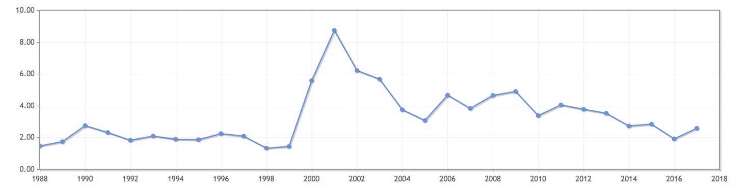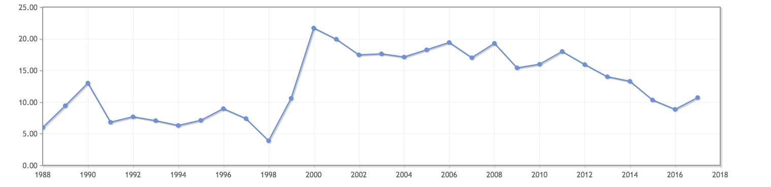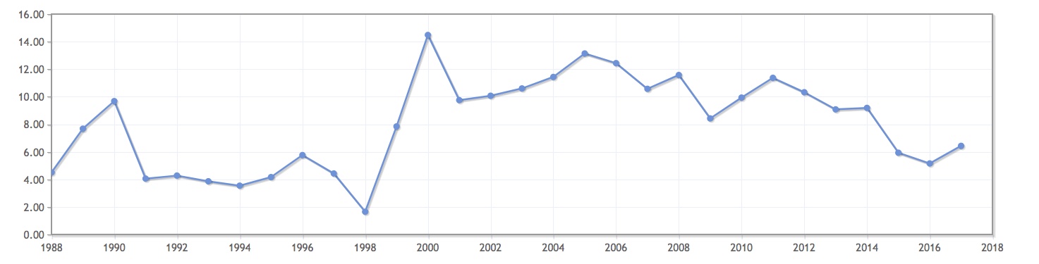 Для Бармалея по нефтянке и прочему. Доля добывающих отраслей в ВВП рассчитанная по методике мирового банка. Клевещут наверное капиталисты. https://www.indexmundi.com/facts/russia/nat...ribution-to-gdp Source: Estimates based on sources and methods described in "The Changing Wealth of Nations: Measuring Sustainable Development in the New Millennium" (World Bank, 2011). Russia Нефть Oil rents (% of GDP) in Russia was 6.43 as of 2017. Its highest value over the past 29 years was 14.48 in 2000, while its lowest value was 1.65 in 1998. Definition: Oil rents are the difference between the value of crude oil production at world prices and total costs of production. ![]() Газ Natural gas rents (% of GDP) in Russia was 2.57 as of 2017. Its highest value over the past 29 years was 8.73 in 2001, while its lowest value was 1.33 in 1998. Definition: Natural gas rents are the difference between the value of natural gas production at world prices and total costs of production. ![]() Все добывающие отрасли включая лесную Total natural resources rents (% of GDP) in Russia was 10.70 as of 2017. Its highest value over the past 29 years was 21.69 in 2000, while its lowest value was 3.88 in 1998. Definition: Total natural resources rents are the sum of oil rents, natural gas rents, coal rents (hard and soft), mineral rents, and forest rents. -------------------- Красный цвет - цвет администрации. © Pampa