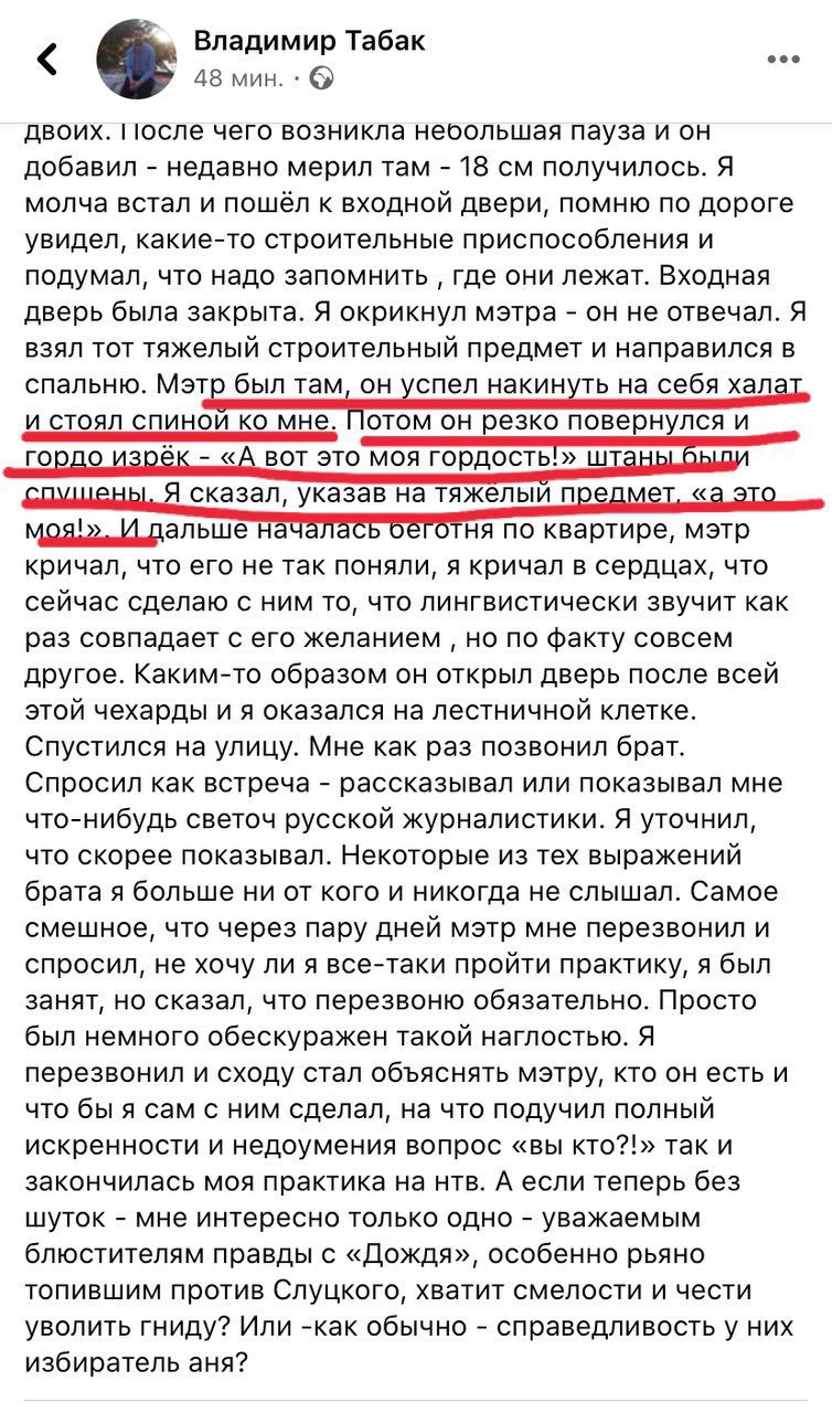 Цитата (Rurouni @ Июл 14 2020, 13:47) На тему сажать, сорри, нет. У нас дохуя мужиков-мудаков которые барышень прожимают, однако что такое изнасилование в законе чётко прописано. И поэтому когда обсуждают что барышня набухавшись решилась на групповушку, а на следующий день решила что это изнасилование - это пиздец просто. А если не барышня а наоборот мужик, то как ? А вообще конечно крестик с трусами перепутаны. Помнится вся либер тусовка Слуцкого от души пидарасила, за то что он журналистка сальные комплименты делал. А у них там в это же время вообще полный пиздец просиходил, которому и слов нет. И кстати на том самом западе куда они все дружно рвутся все фигуранты уже огребли бы лет по 5, напомню историю Ассанджа, и как Кевина Спейси из профессии выпиздидили. ![]() -------------------- Красный цвет - цвет администрации. © Pampa