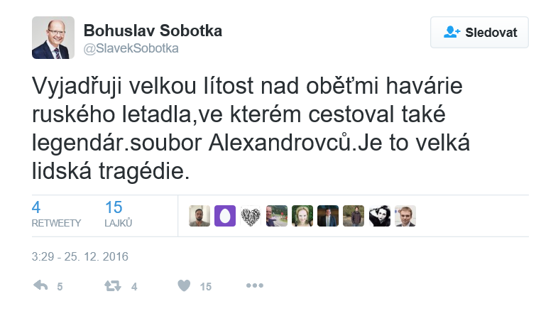 Там не просто народ летел а артисты песни и пляски Александрова 64 человека Журналисты неск групп.и доктор Лиза Глинка-благотворитель. Наверняка с подарками. Версия о бомбе набирает силу.А экипаж даже сигнала бедствия не подал а просто развернулся резкие к берегу.Набирали высоту очевидно для полета над горами через Иран.Самолет ведь МО РФ. Все это навевает воспоминание о аэробусе над Синаем. А бомбу и в муз- инструментах можно упрятать. Сообщают о большом разброса обломков. Сегодня католическое Рождество-для исламистов разницы нет так как все мы христиане. Кстати Лиза имеет мужа американца и сама гражданство США. -------------------- больше всех в колхозе работала лошадь
