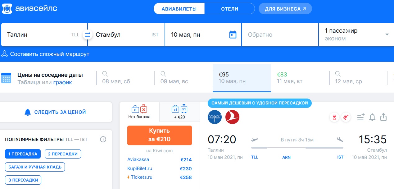 Цитата (slab105 @ Апр 24 2021, 10:40) У кого дешевле? Специально посмотрел на 10 июня. Из Таллинн в Стамбул (даже не в Анталью) если не с пересадками с 24ч сиденья- 175 евро в один конец на человека (пересадка и "всего" 13,5ч общего времени). Из Иркутска в Сочи с небольшой пересадкой (общее время 11,5ч)- 160 евро в один конец на человека. Можно за 8 ч долететь. Нажмите для увеличения -------------------- Вы нагло стяжали огромный запас знаний, и тенденциозно его используете в свою личную пользу. Я чую что я прав, но не знаю как это обосновать против такого исторического и интеллектуального чудовища как вы, и это меня злит!