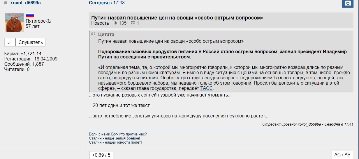 ![]() Активный пользователь ![]() ![]() ![]() Группа: Пользователи Сообщений: 5011 Регистрация: 14-Июля 16 Репутация: 1173