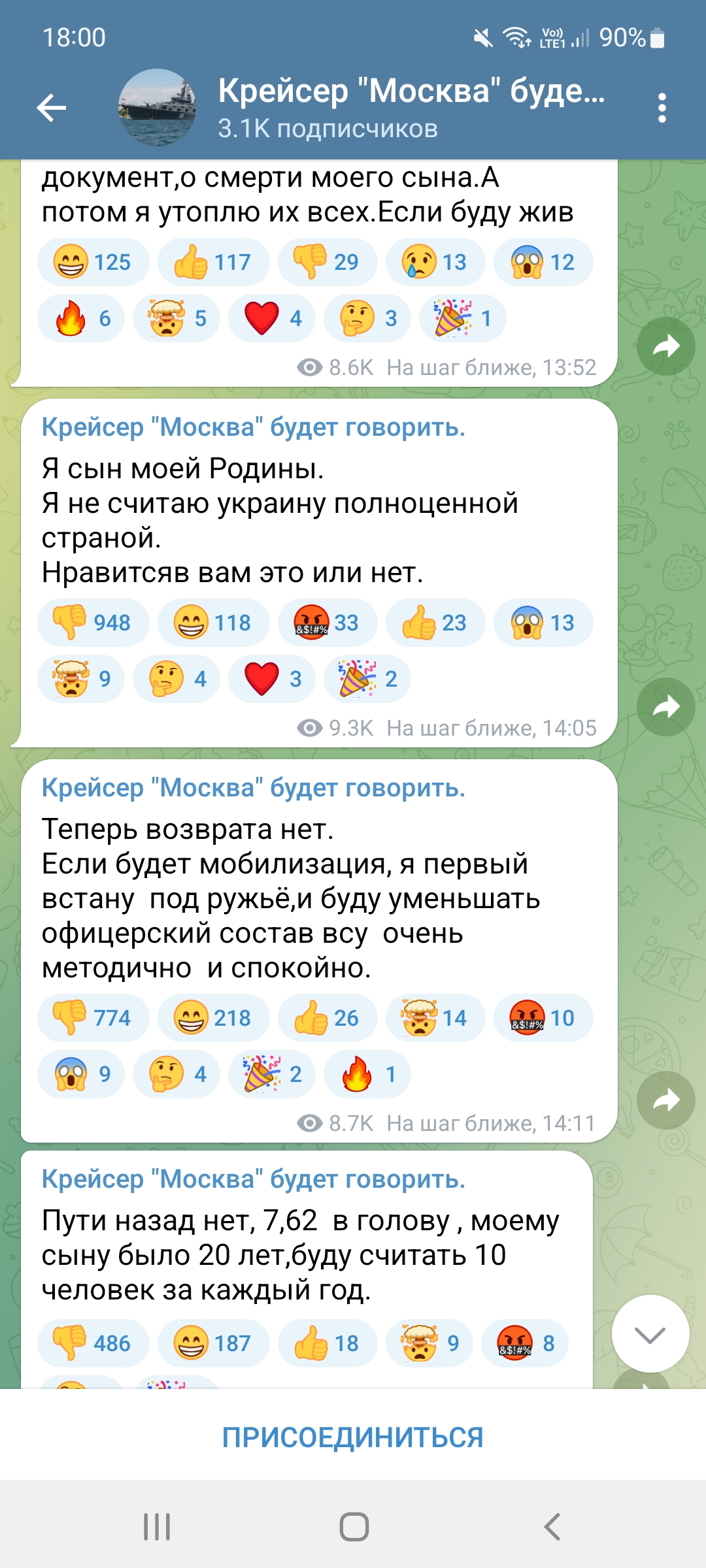 давно бы добровольцем записался и отомстил биндерам ведь в начале войны он так бодро и горячо написывал, как нужно давить укросвиносволочей и так далее ну вот и шел бы в бой, тем более - повод такой прекрасный и сыном он должен гордиться, герой же, за родину, ради величия! ведь сам так мечтал про величие и ссср, ну вот, мечта исполняется на глазах, так что ж он не рад? |
