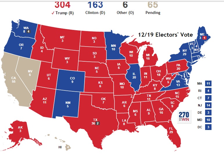 Цитата (Pampa @ Дек 19 2016, 23:09) Officially, the electors’ votes won’t be counted until January 6. Это формально, да А пока так -------------------- intelligenti pauca