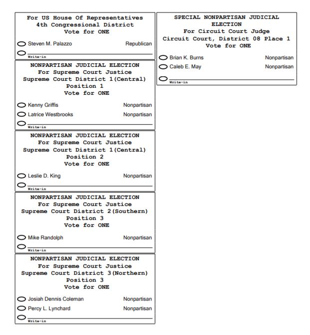 А, ну и еще с десяток глянул - где 5, где 10, где 3 страницы. При этом надо обязательно аккуратно заштриховать поля (овал ,прямоугольник), не оставляя пустых мест и ни в коем случае не выходя ни за одну границу поля. Я б тоже по почте голосовал ,в каком штате подурнее времени на такую штрихофку уйдет от 10 минут до пары часов. А уж 87 алабамских страниц я бы полдня штрихофал, кек.