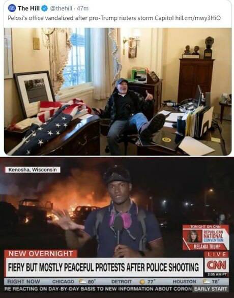 1. Офис Пелосси разгромлен после того как погромщики Трампа захватили конгресс 2. В целом мирный BLM протест после полицейской стрельбы в Кеноши -------------------- Красный цвет - цвет администрации. © Pampa