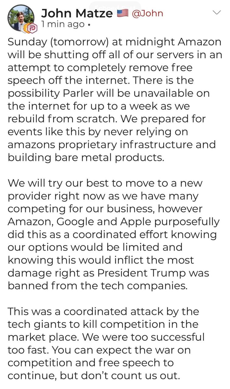 Цитата (pilotv @ Янв 10 2021, 14:49) Ты слегка не понимаешь как современные облачные дата центы устроены. Там распределённая инфраструктура географически разнесенная , с работой на виртуальных машинах. Работа критических приложений резервируется путем синхронизации нескольких дата центров . Грубо говоря необходимо что бы электричество моргнуло по всем штатам, это не принимая во внимание то что есть ИПБ как минимум на сутки. Вот пост создателя сети Parl , подтверждает что Амазон погасит их сервера сегодня вечером и сообщает что они ожидали такой сценарий поэтому будут стараться работу приложения восстановить через неделю . Очень странно когда ты собираешься быть "очень успешным" конкурентом кому то и еще "очень быстро", но при этом зависишь от того с кем ты так конкурируешь более чем полностью и недоумеваешь, почему этот конкурент тебе мешает совсем к успеху придти... Вот он, "акульий оскал американского капитализма"! |