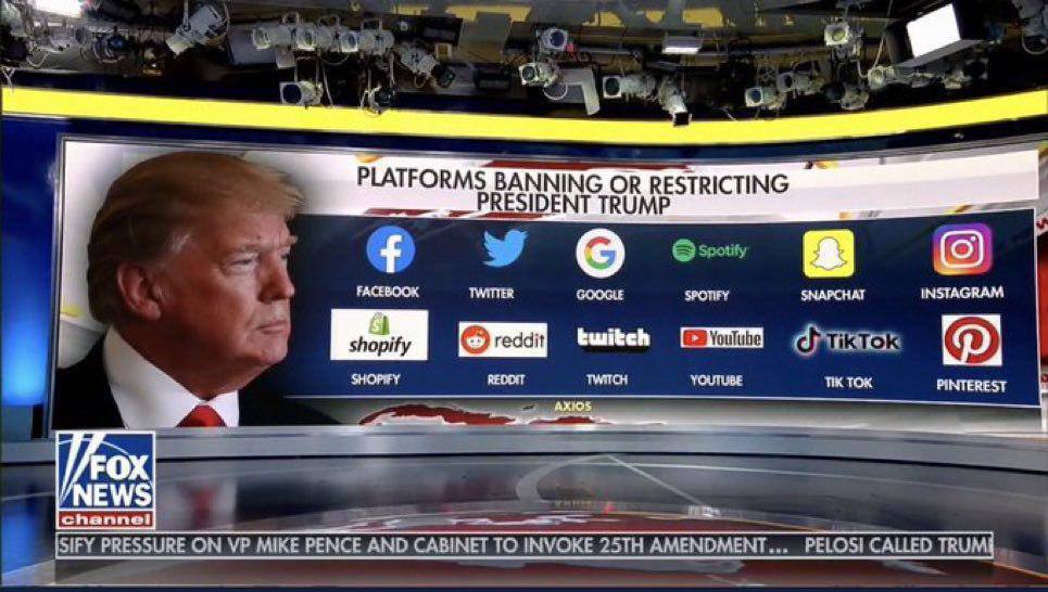 Цитата (pilotv @ Янв 10 2021, 15:29) Так про это Вам третий день и пишут , что когда касается "банановых республик" , то риторика и ценности одни , а когда своих дел то почему-то все совсем по другому. И выясняется что 12 соцсетей , включая блять музыкальный спотифай и сервис игровых стримов твитч внезапно одновременно в течении нескольких часов решили забанить Трампа . Просто так совпало , а единственную соцсеть , которая этого не сделает в течении суток отключают от хостинга, тоже вдруг. И все это без малейшего официального решения властей, то-есть аппелировать просто не к кому , корпоративные правила. То-есть по факту что тут что там методы одинаковые . В банановый республиках так делают по команде от власти. Здесь мы видим что разные институты, ветви власти, бизнес, действуют свободно и независимо от власти. |