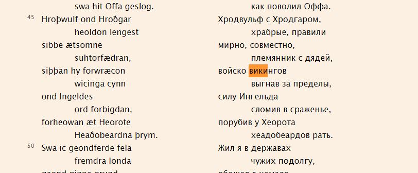 Цитата (Zealot @ Фев 18 2020, 03:38) Именно viking, возможно. Само понятие и схожая словоформа, разумеется, гораздо раньше. Видсид, например: немного перевод не того "wicinga cynn", это не войско, это, буквально - "клан, тейп, или племя викинга (висинга)" - как точно танскибировать, мы не знаем "cynn" на староанглийском, это kin в современном английском, или Sippe в современном немецком, что перводится - "род, родня, племя, клан" так же, не знаем точно, идет ли речь именно о викингах, или о каком-то "тейпе висинга" - одном из родов, живших рядом с почтенными Хродульфом и Хродгаром - мифическими вожаками данов, которые, кстате, тоже должны бы быть записаны в число викингов |