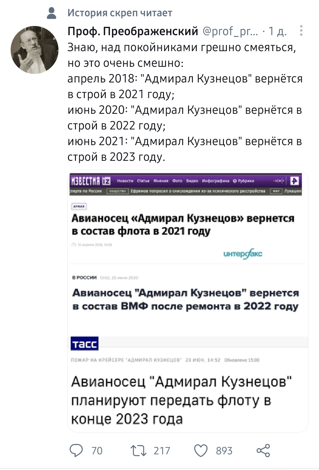 Несуществующий российский авианосец «выдержал» удар реального американского https://lenta.ru/news/2021/04/03/varan/ -------------------- |