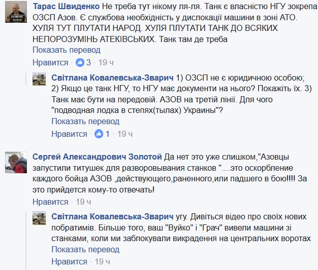 Цитата У волонтерів та робітників Інженерної Групи із заводу "АТЕК", який після рейдерського захоплення контролюють азовці та "тітушки", було ВИКРАДЕНО ТАНК (Важка універсальна гусенична платформа. Штурмова машина). Викрадений танк перевезений до с. Урзуф Донецької області - у місце розташування полку “Азов”. Про це стало відомо з фото, викладених азовцями у мережі Instagram. https://www.facebook.com/permalink.php?stor...990&pnref=story И станки в придачу вывезли. Нажмите для увеличения -------------------- Духовность, Смирение, Кефир!