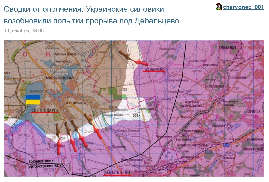 Боевиков перевозили из госпиталя Днепропетровска в Одессу, но одесский аэродром из-за сильного тумана принять борт не смог. В результате самолет направили в Винницу. Туда привезли 12 раненых — в основном с минно-взрывными травмами средней тяжести. Таким образом, за последнюю неделю в винницкий военный госпиталь доставили уже 28 всушников — все они со Светлодарской дуги. Один из полевых командиров украинских оккупационных войск по кличке «Купол» рассказал о потерях ВСУ на Дебальцевском направлении. Он заявил, что был убит солдат, считавшийся ранее попавшим в плен во время боев на Светлодарской дуге. «Тот, что был пропавший без вести, мы его вчера нашли, убедились, что это действительно наш солдат… Погибший», — рассказал военный. Он также утверждает, что в общей сложности в его зоне ответственности погибло 9 украинских военнослужащих и 63 получили ранения и контузии. «Начиная с 18-го декабря по сегодняшний день, за все время проведения данной операции, вышло 9 „двухсотых” (убитых, — прим. РВ), 35 — „трехсотых” (раненых), контуженных — 17, травмированных — 11, общее количество — 72 человека», — заявил он корреспонденту пропагандистского канала минобороны Украины. Кроме того, пятеро раненых из-под Дебальцево доставлены в Днепропетровскую больницу им. Мечникова, один из них — в крайне тяжелом состоянии. Об этом сообщил главврач больницы Сергей Рыженко. «Вчера доставили 5 раненых бойцов, один из них в крайне тяжелом состоянии. Ему 29 лет. У него минно-взрывная рана головы, проникающая рана головного мозга, раны лица, глаз, а также раны правой ноги. Он на аппарате искусственной вентиляции легких, ему делали операцию», — сообщил врач. -------------------- "А бандеровцы злятся и злобно дрочат"