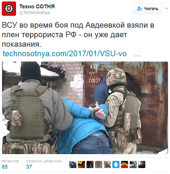 Цитата (atalex @ Янв 29 2017, 22:07) Когда Бутусов начнет писать, что российско-оккупационные войска в панике и массово бегут через границу в Ростов, значит, счет героев перевалит уже за десяток. Но все же,все же. Массовое применение арты с стороны ДНР,ЛНР говорит что протоукры давят и сильно. -------------------- СЛАВА УКРАИНЕ!!!