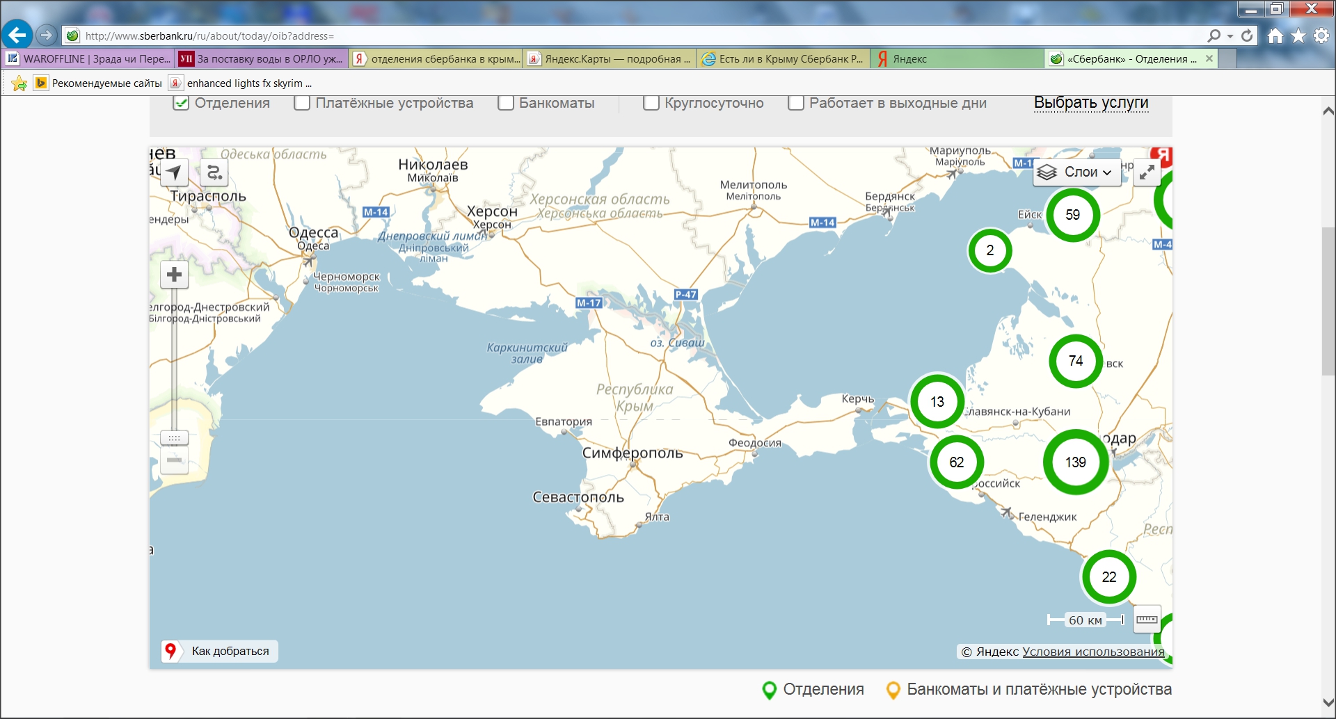 Цитата (Кэшик @ Сегодня, 23:20) Сбербанк присутствует в Крыму. Вот, поискал отделения. Ни одного крымского не увидел ![]() Ща буду еще искать ЗЫ Проверил по перечню отделений и банкоматов: http://www.sberbank.ru/ru/about/today/oib?address= Нет, не нашел. Ни одного нет. На российской земле, нет НИ ОДНОГО банкомата, НИ ОДНОГО отделения банка, главным акционером которого является Россия. -------------------- Ценность любого оружия определяется успешностью его применения и готовностью к использованию в нужном месте и в нужное время.