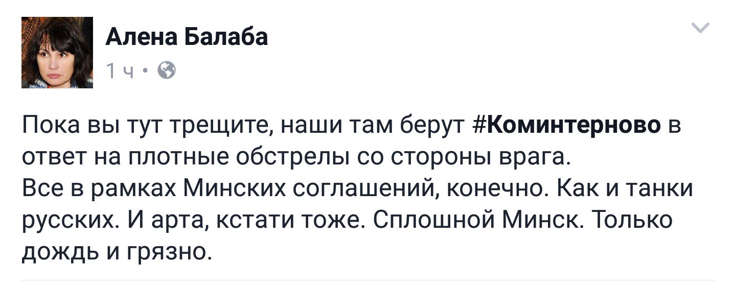 Двое военнослужащих ВСУ погибли, семеро получили ранения в результате неосторожного обращения с минометом «Молот». Об этом на брифинге в ЛуганскИнформЦентре сообщил официальный представитель Народной милиции ЛНР подполковник Андрей Марочко. Он отметил, что «в рядах вооруженных сил Украины продолжают иметь место случаи небоевых потерь среди личного состава». «Так, несколько дней назад в районе населенного пункта Царевка в 36 км от Луганска в окрестностях газоконденсатной станции на временной огневой позиции военнослужащие второго батальона 14-й бригады вооруженных сил Украины во время тренировки по огневой подготовке допустили ошибку при обращении с пресловутым минометом „Молот”, в результате чего произошел разрыв мины в стволе», — рассказал Марочко. «От разрыва мины погибло двое военнослужащих вооруженных сил Украины и семеро получили ранения. Среди погибших и командир второго батальона 14-й бригады капитан Буранов», — добавил представитель Народной милиции. -------------------- "А бандеровцы злятся и злобно дрочат"