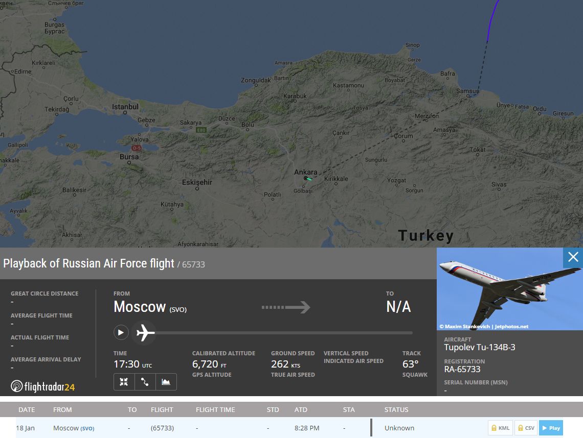 Цитата (wowka @ Янв 19 2017, 18:37) там в комментах написали, что борт собственно в Анкару летел (т.е. не через, а в ) Самолеты ВКС РФ начали летать через воздушное пространство Турции.Судя по открытой информации, доступной на сайте Flightradar24, самолет Ту-134Б-2 RA-65733, следует по маршруту из Чкаловской в Хмеймим через воздушное пространство Турции, чего ранее не наблюдалось. http://ic.pics.livejournal.com.... -------------------- "Нужно прощать своих врагов, но не прежде, чем они будут повешены." - Генрих Гейне.