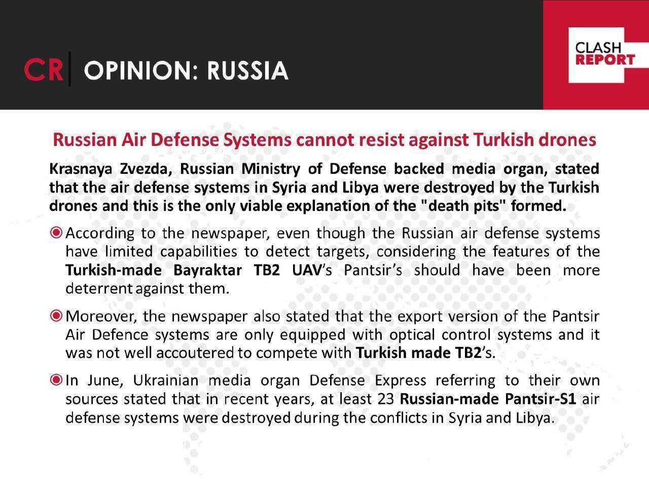 Тута турецкий clash report , ссылаясь на абсолютно достоверные украинские сведения ,🧐 заявляет о 23 уничтоженных в Сирии и Ливии Панцирях, чего их Москалей жалеть то , пиши больше.