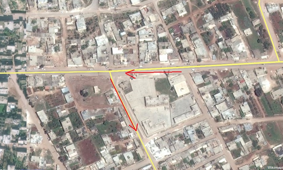 Кафр-Набода, ребл на 00:50 говорит асад дабаб и показывает следы гусенец на дороге
