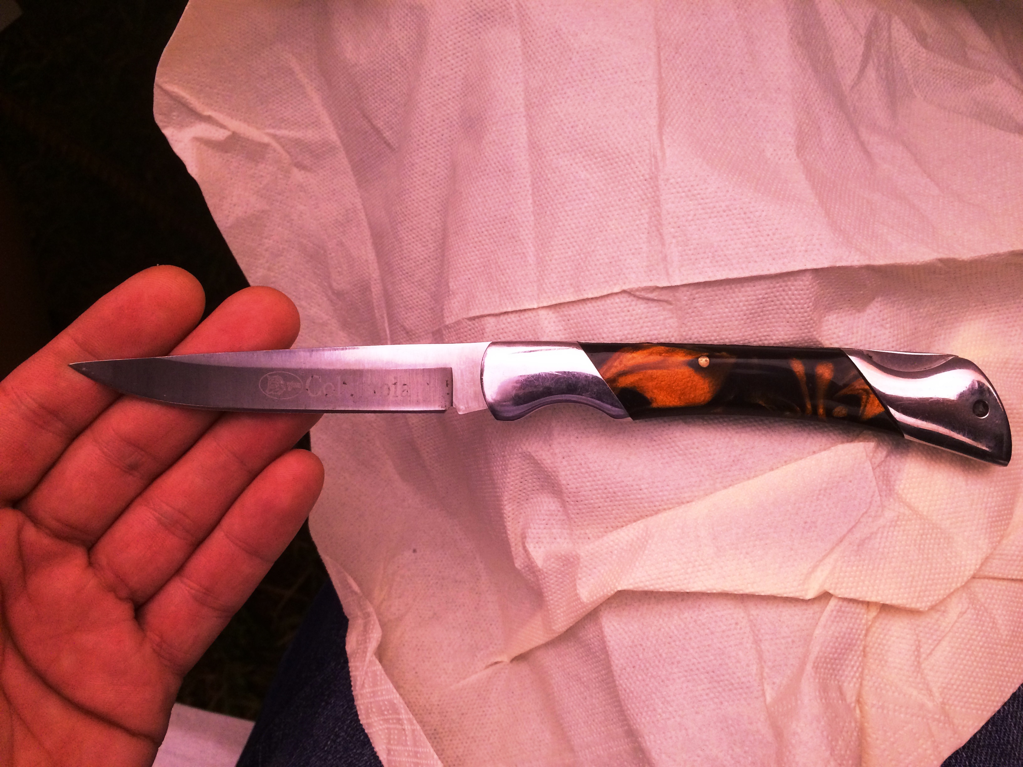 Цитата (Кубок @ Ноя 5 2015, 20:53) новое приобретение. нож не новый, раскладушка, в руке лежит удобно, сталь очень хорошая. из недостатков - от старого хозяина пятна на клинке, всегда думал что раскладушка выглядит вот так Присоединённые изображения |