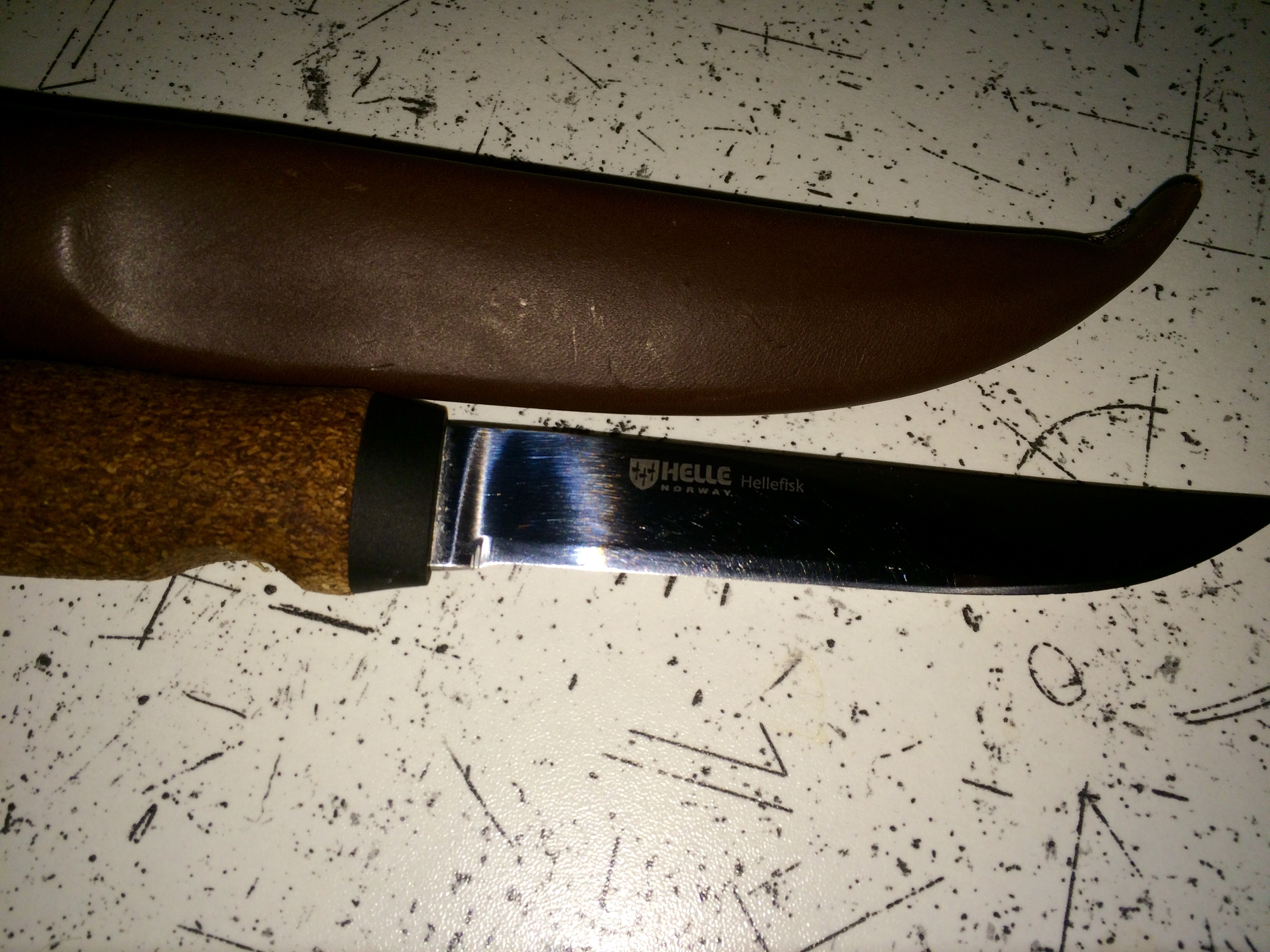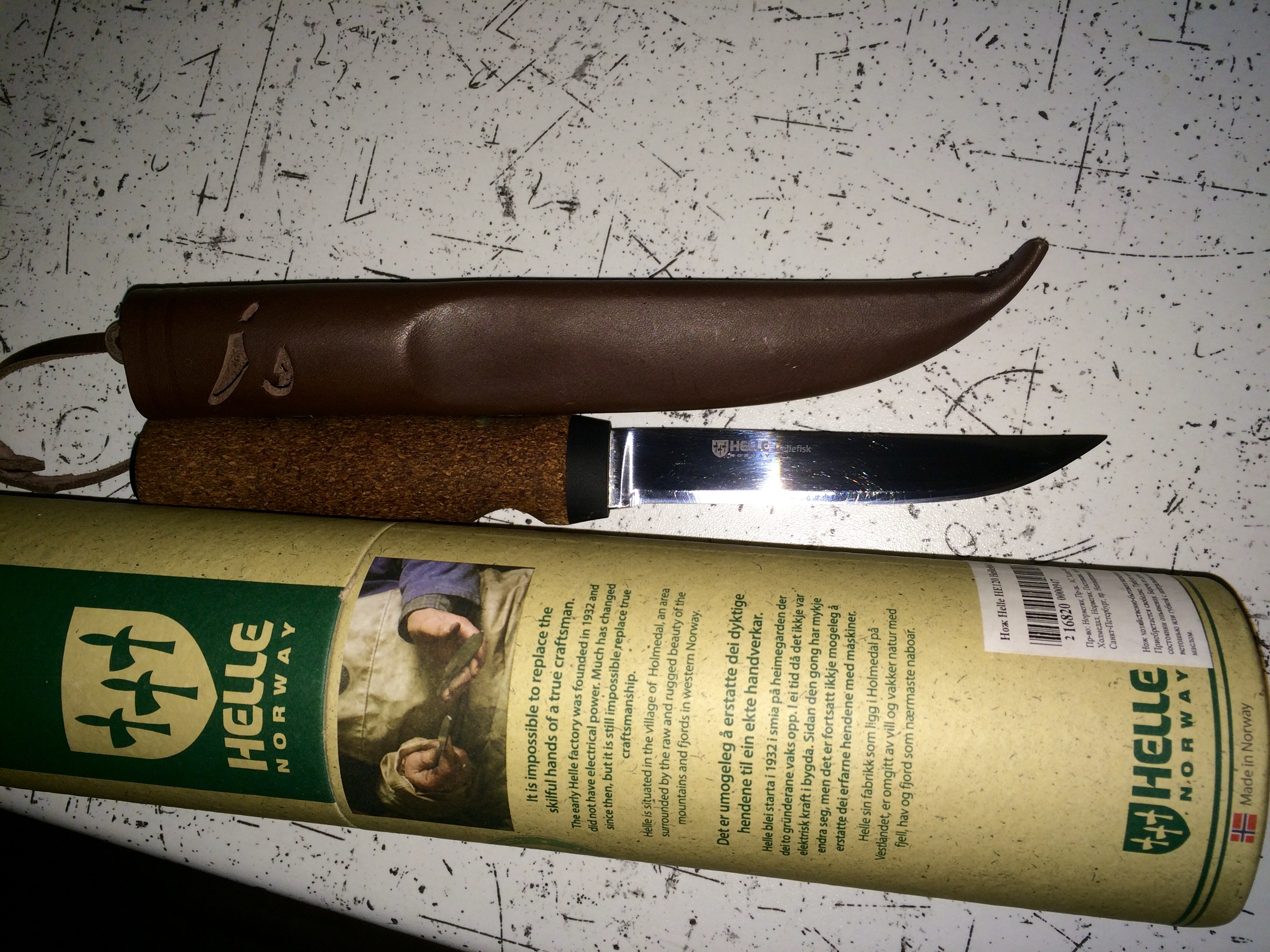 подарок товарищу на ДР. норвег, ручка - цельная пробка, очень приятно лежит в руке ( он рыбак -выбирал специально плавающий нож) заточка просто зверская