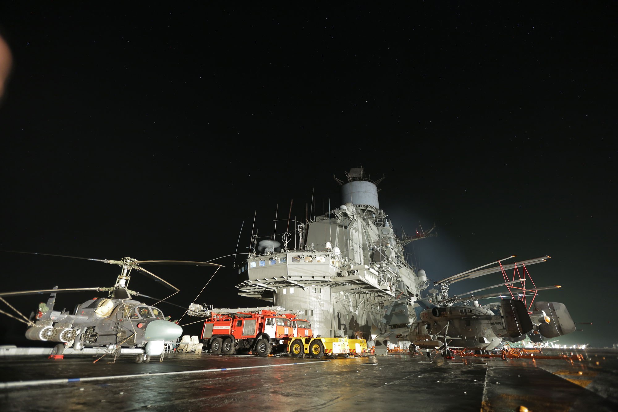 Прочитали 112 раз Летчики российской морской авиации за во время операции в Сирии выполнили 420 боевых вылетов с кораблей авианесущей группы Северного флота во главе с тяжелым авианесущим крейсером «Адмирал Кузнецов», сообщил командующий российской группировкой войск в Сирии генерал-полковник Андрей Картаполов, передают «РИА Новости». По словам Картаполова, из 420 боевых вылетов 117 были совершены ночью. «Практически все полеты проходили в сложных гидрометеорологических условиях», — сказал он. Картаполов рассказал, что всего за это время российской операции в Сирии были поражены 1 тысяча 252 объекта террористов, среди которых были скопления боевиков и военной техники, огневые позиции террористов, а также объекты инфраструктуры и опрные пункты незаконных вооруженных формирований. Минобороны впервые рассказало об отправке тяжелого авианесущего крейсера «Адмирал Кузнецов» в Средиземное море в середине октября. Кроме него в боевой группе российских кораблей следуют тяжелый атомный ракетный крейсер «Петр Великий», большие противолодочные корабли «Североморск» и «Вице-адмирал Кулаков», а также корабли Черноморского флота и суда обеспечения. Через месяц, 15 ноября, Россия объявила о начале масштабной операции в Сирии. «Адмирал Кузнецов» впервые в истории российских ВМФ принял участие в боевых действиях. По словам министра обороны Сергея Шойгу, боевые самолеты Су-33 нанесли удары по складам с боеприпасами, заводам по изготовлению оружия массового поражения и центрам подготовки террористов в Сирии В этот же день фрегат «Адмирал Григорович» нанес удары по террористам в Сирии в провинции Идлиб и Хомс. По словам Шойгу, для нанесения ударов «по заранее определенным и разведанным целям» использовались крылатые ракеты «Калибр». Подробнее на РБК: http://www.rbc.ru/rbcfreenews/586f5fee9a794767744bf7b9 |