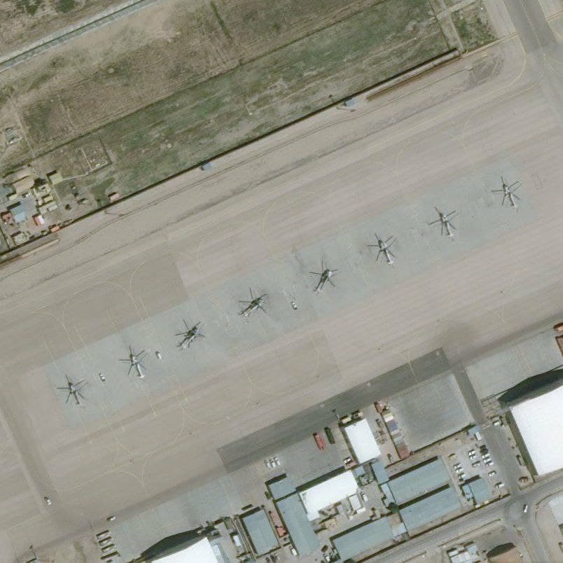 Это то что было на аэродроме Мазари Шарифа. ( Ми-17В-5, UH-60A BlackHawk, MD-530F (G), а также Cessna 208B, AC-208B и A-29B Tucano