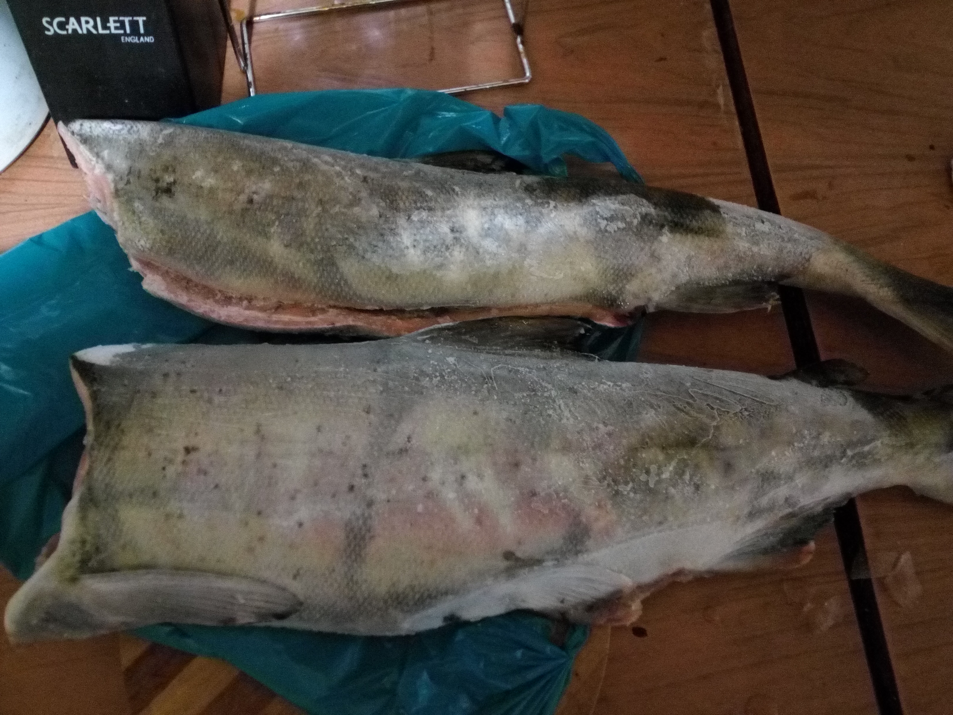 Вот, пару кетин подогнали. Хоть и в море поймана, но нерестовыее изменения видны. Что и неудивительно, декабрь уже. И я ее сьем, офигенный подгон.