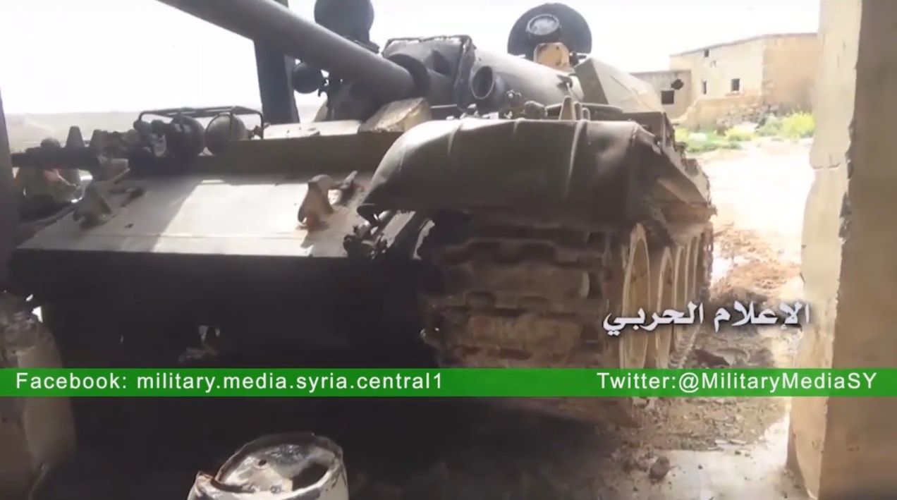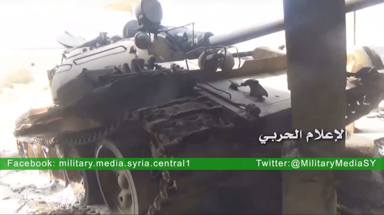 Таки у Лива шухада аль-Ярмук сегодня минус два танка. Если будет видео, то возможно сможем рассмотреть номера (они нанесены сзади на башне) или другие приметы и опознать технику, по этим 3 фото вряд ли получится. В 2013 году у них была серьезная группа бтт, на одном из видео они засветили 3 БМП-1, 7 Т-55 и одну брэм-3. Что интересно, они перекрасили всю свою технику в единообразный камуфляж.