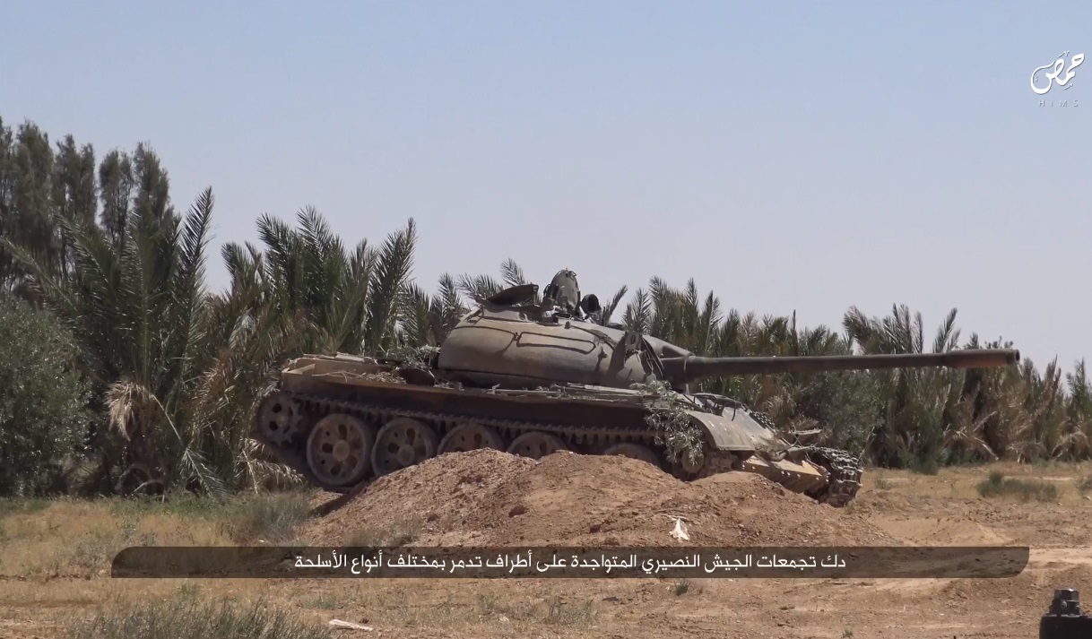 Цитата (fahed @ Апр 30 2016, 20:51) Раз вы так любите бронетехнику, вот вам из Хамы : Нумерованная даббаба ИГ . Это ещё лояловская 6-тизначная нумерация. Походу очень свежий (на момент съёмки) трофейный Т-55 (не модернизированный). |