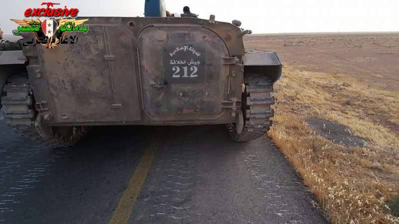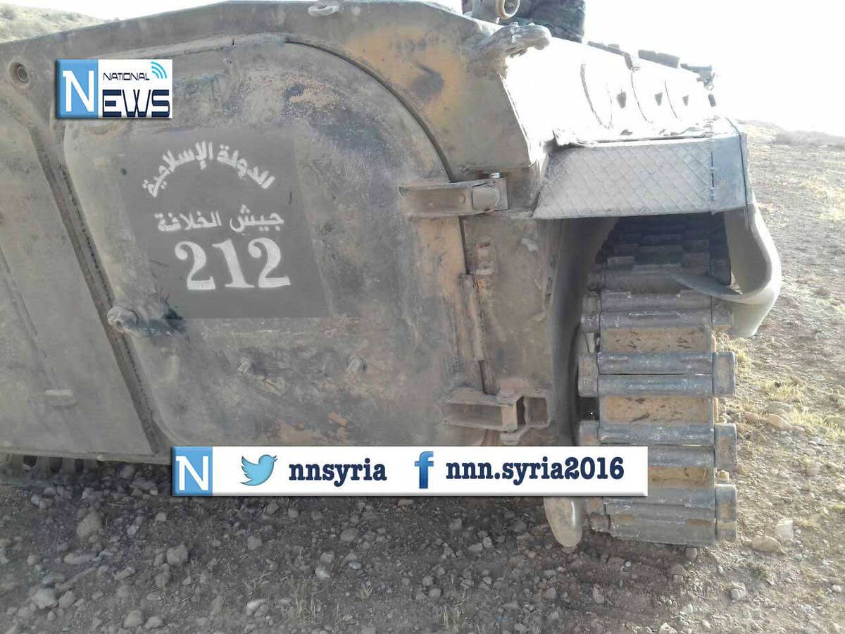 Известные номера БМП в черном тактическом знаке: 202 - бомбардировщик на базе БМП-1, трофей лоялистов, наступление на Табку 10.06.2016 206 - БМП-1, трофей лоялистов, осада аб. Квейрис, ранее 23.10.2015 208 - БМП-1, трофей лоялистов, осада аб. Квейрис, ранее декабря 2015 212 - бомбардировщик на базе БМП-1, трофей лоялистов, наступление на Табку 03.06.2016 215 - БМП-1, уничтожен лоялистами, осада аб. Квейрис, ранее 14.11.2015 218 - БМП-1, трофей лоялистов, бои на Востоке Алеппо 30.01.2016 222 - бомбардировщик на базе БМП-1, трофей лоялистов, наступление на Табку 22.06.2016 225 - бомбардировщик на базе БМП-1, применен в декабре 2016 у Аль Баба 229 - БМП-1, активна в августе 2016 в р-не Квейреса 230 - БМП-1, трофей СДФ у Манбидж, август 2016 233 - БМП-1, трофей СДФ у Аль Баба, декабрь 2016 235 - бомбардировщик на базе БМП-1, применен в февраля 2017 у Аль Баба Известные неполные номера БМП-1 в черном тактическом знаке: 2ХХ - БМП-1 уничтожен лоялистами, осада аб. Квейрис 10.08.2015 или ранее (возможно потом восстановлен и использовался лоялистами, скорей всего это и есть номер 208) X13 - БМП-1 уничтожен лоялистами в р-не Дайр-эз-Заур 19.10.2015 или ранее, скорей всего полный б/н 213 Известные номера Т-72 в черном тактическом знаке: 311 - Т-72, уничтожен, осада аб. Квейрис, 10.08.2015 или ранее 329 - Т-72, известен по фотографиям "воркшопа" Известные номера Т-55 в черном тактическом знаке: 301 - Т-55, захвачен СДФ в Ath Thadyayn, юго-восточнее Табки. 302 - Т-55, захвачен иракцами около Тель Афара (Ирак) в декабре 2016 309 - Т-55, захвачен СДФ в Ath Thadyayn, юго-восточнее Табки. 314 - Т-55 захвачен СДФ в р-не Ракки(?), ранее 27.04.2017 319 - Т-55, трофей лоялистов, осада аб. Квейрис, ранее 12.08.2015 324 - известна демонтированная башня от Т-54/55, ранее 24.04.2017 325 - Т-55, трофей лоялистов на рембазе(?) южнее Табки, опубликован 21.06.2017 352 - Т-55, активен на 01.06.0217 на юго-востоке Алеппо. 363 - бомбардировщик на базе Т-55, бои в р-не Дайр-эз-Заур, 10-11 ноябрь 2015 366 - Т-55, трофей лоялистов на рембазе(?) южнее Табки, опубликован 21.06.2017 370 - Т-55 захвачен в ноябре 2016 в Мосуле (Ирак) Известные неполные номера Т-55 в черном тактическом знаке: 3Х2 - Т-55, скорей всего б/н 302 396(?) - Т-55, захвачен СДФ в Ath Thadyayn, юго-восточнее Табки. Номер затер и плохо читаем. Известные номера Т-62 в черном тактическом знаке: 335 - Т-62, Хасека, поврежден, трофей курдов, июль 2015 года 336 - Т-62, трофей лоялистов, бои на Востоке Алеппо 30.01.2016 344 - Т-62, активен на январь 2016 года, участвовал в боях с курдами 347 - Т-62, скорей всего бомбардировщик, попытка деблокады Манбиджа, 3 июля 2015 года. 348 - Т-62, захвачен СДФ в Ath Thadyayn, юго-восточнее Табки. 353 - Т-62, захвачен СДФ в Ath Thadyayn, юго-восточнее Табки, на верхнем лобовом листе номер в черном тактическом знаке, на заднем номер нанесен от руки. Известные номера БТР-50 в черном тактическом знаке: 601 - бомбардировщик, бои в р-не Дайр-эз-Заур, ранее 5 ноября 2015 Известные номера джипов с установленными башнями БМП-1 в черном тактическом знаке: 227 - на октябрь 2016 действовала в ДэЗ 232 - на апрель 2017 действовала в ДэЗ Б/н в черном прямоугольнике с горизонтальным текстом 372 - захвачен ССА в сентябре 2016 Б/н в простом черном прямоугольнике, возможно ранний вариант, послуживший основой для создания тактического знака ИГИЛ, известна одна единица. [b]310 - Т-55, уничтожен в Кобани, ранее 25 марта 2015 года. Трафарет в не черного тактического знака 211 - БМП-1, трофей лоялистов, бои в ДэЗ, опубликован 19 июня 2017. -------------------- #JESUISABUHAJAAR