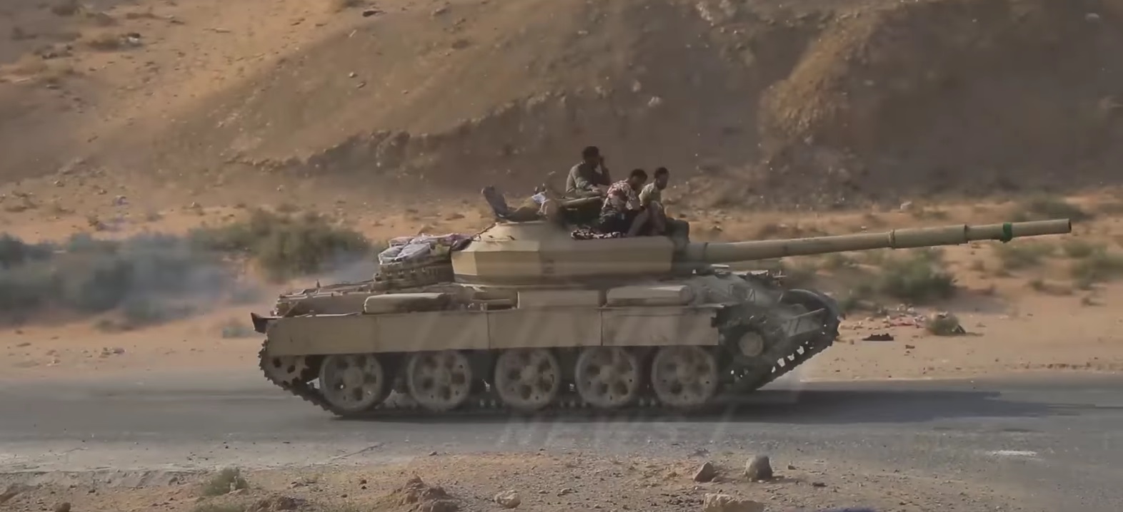 Лояльская милиция Сукур Бадия в Сухне с отжатым танком.