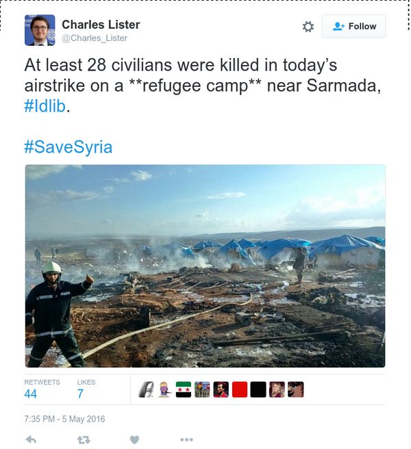 Цитата (Србија @ Май 5 2016, 21:34) Несколько десятков человек были убиты и ранены после воздушного нападения на лагеря беженцев в Сирии, недалеко от границы с Турцией. А вот комрад и беженцы в этом лагере Цинк Ну и белокасочники рядом. Впрочем как всегда Нажмите для увеличения -------------------- Мнение — это как дыра в заднице — есть у всех. Но «есть у всех» не означает «надо всем показывать»