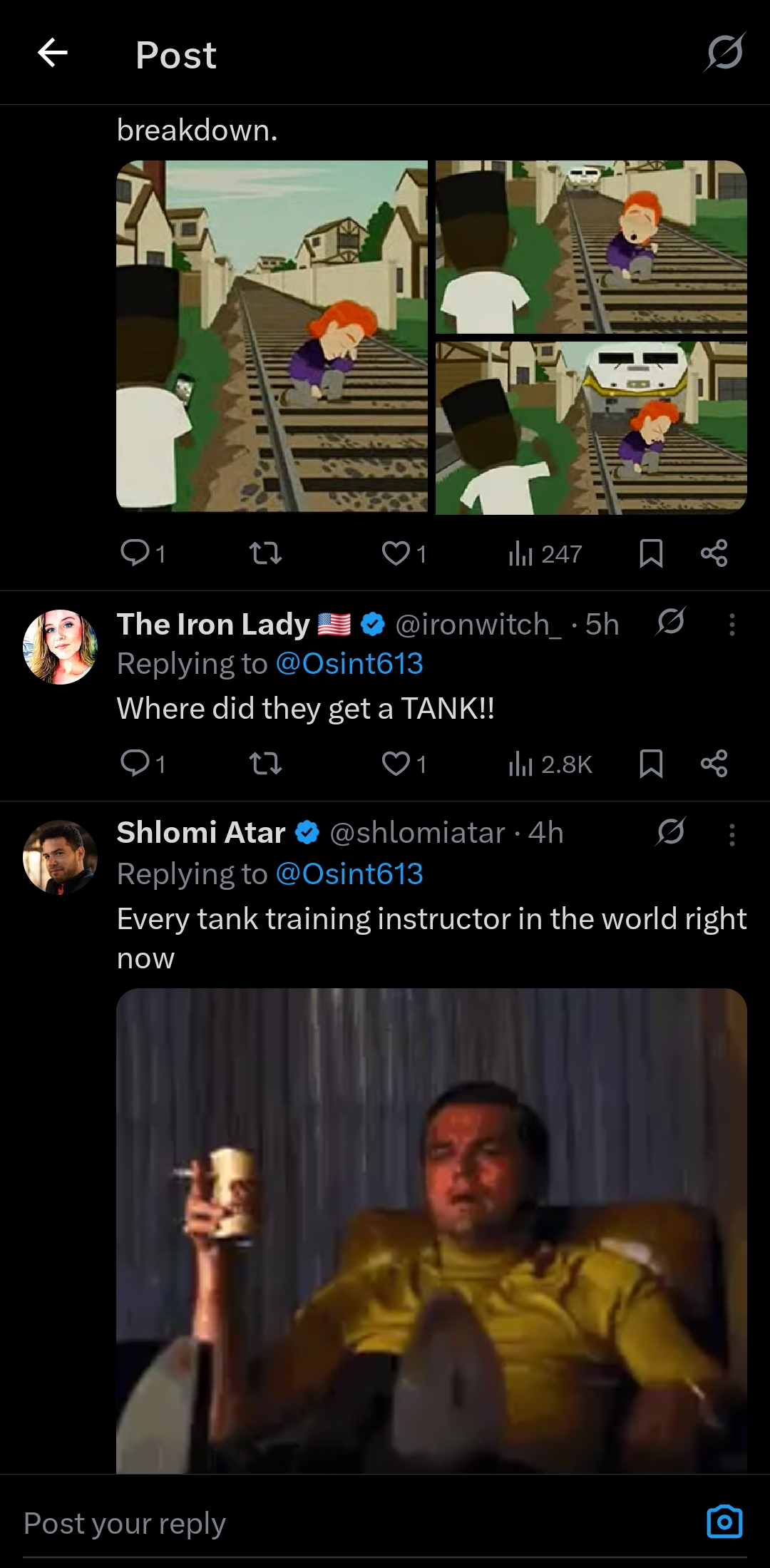 Цитата (12th @ Авг 20 2025, 23:05) Вы Пан Сотник зрите в самую суть. Мне один танкист (с призыва как ни странно Гилада Шалита) по пьяни рассказывал что согласно их танкистских традиций кто давит, тот и моет. Т.е. мехвод. И гусеницы морковки в этом плане пиздец хуевые, там типа даже самые мелкие косточки застряют. И выковыривать их это пиздец стресс. А танковые командиры после возвращения с миссии дрочат своих подчиненных на предмет чистоты танка на том же уровне что и пехотные про М-4. Ну и типа получается что за этим видео (обрезанным на половину БЛЯТЬ!) стоит грустный мехвод со шлангом в идеальном случае, а по факту с ведром с водой. Еще раз, это по рассказам танкеров начала 2000х. За что купил за то продал. Такие дела. Есть фото после, там не так уж сильно и размазало, мягкий грунт Немного ещё по песочке покататься и ничего мыть не нужно |