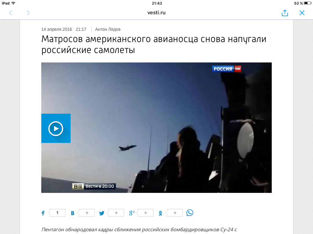 Цитата (Ghost @ Апр 18 2016, 09:56) Уже пуганые. По поводу http://riafan.ru/517266-donald-kuk-protiv-...ushchen-poslali Цитата «Дональд Кук» против Су-24М: полез — получил, возмущен — послали "Ну, вот как всегда: сначала немного включаем разведаппаратуру в 70 км от нашей базы, потом обижаемся на то, что гонять начинают. Потом звоним Лаврову, потом он посылает к... Министерству обороны, а потом вдруг начинаются безграмотные разговоры о боевых действиях. То есть полез — получил. Получил, но возмущен? Возмущен — послали. Что такое 70 км до нашей базы? Это чуть больше 35 морских миль. 12 миль — терводы. То есть, учения (или что там у американцев было?) происходило рядом с нашими терводами. И они хотели, чтобы к ним не прилетели 2 самолета? Хорошо, что не 20 прилетели. Обычная практика: устраиваешь учение рядом с чьей-то базой — жди ответную реакцию. Дождался — не сетуй". -------------------- Вы держитесь, здоровья вам, хорошего настроения
