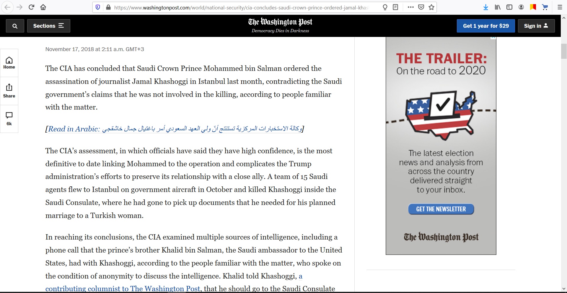 Цитата (fahed @ Апр 6 2020, 14:29) Ой, извини, у меня нет платной подписки на Вашингтон Пост и я не могу увидеть там скан приказа на расчленение Хашшоги за подписью МБС. Не сделаешь ли скрин? upload images Все скрины не стал делать, что то дохрена там текста. November 17, 2018 at 2:11 a.m. GMT+3 The CIA has concluded that Saudi Crown Prince Mohammed bin Salman ordered the assassination of journalist Jamal Khashoggi in Istanbul last month, contradicting the Saudi government’s claims that he was not involved in the killing, according to people familiar with the matter. Read in Arabic: وكالة الاستخبارات المركزية تستنتج أنّ ولي العهد السعودي أمر باغتيال جمال خاشقجي The CIA’s assessment, in which officials have said they have high confidence, is the most definitive to date linking Mohammed to the operation and complicates the Trump administration’s efforts to preserve its relationship with a close ally. A team of 15 Saudi agents flew to Istanbul on government aircraft in October and killed Khashoggi inside the Saudi Consulate, where he had gone to pick up documents that he needed for his planned marriage to a Turkish woman. In reaching its conclusions, the CIA examined multiple sources of intelligence, including a phone call that the prince’s brother Khalid bin Salman, the Saudi ambassador to the United States, had with Khashoggi, according to the people familiar with the matter, who spoke on the condition of anonymity to discuss the intelligence. Khalid told Khashoggi, a contributing columnist to The Washington Post, that he should go to the Saudi Consulate in Istanbul to retrieve the documents and gave him assurances that it would be safe to do so. AD Trump says he’ll speak with CIA about Khashoggi killing Trump said he expects to be updated Nov. 17 with the CIA's conclusions about the murder of Saudi journalist Jamal Khashoggi. (Reuters) It is not clear if Khalid knew that Khashoggi would be killed, but he made the call at his brother’s direction, according to the people familiar with the call, which was intercepted by U.S. intelligence. Fatimah Baeshen, a spokeswoman for the Saudi Embassy in Washington, said the ambassador and Khashoggi never discussed “anything related to going to Turkey.” She added that the claims in the CIA’s “purported assessment are false. We have and continue to hear various theories without seeing the primary basis for these speculations.” The CIA’s conclusion about Mohammed’s role was also based on the agency’s assessment of the prince as the country’s de facto ruler who oversees even minor affairs in the kingdom. “The accepted position is that there is no way this happened without him being aware or involved,” said a U.S. official familiar with the CIA’s conclusions. AD Turkey gave Khashoggi tapes to U.S., Saudi, Europeans, Erdogan says Turkish President Erdogan says Saudi Arabia, the U.S., Germany, France and Britain have all been given the recording of the dying moments of Jamal Khashoggi. (Photo: AFP/Getty Images/Reuters) Crown Prince Mohammed bin Salman is ‘chief of the tribe’ in cowed House of Saud The CIA sees Mohammed as a “good technocrat,” the U.S. official said, but also as volatile and arrogant, someone who “goes from zero to 60, doesn’t seem to understand that there are some things you can’t do.” CIA analysts believe he has a firm grip on power and is not in danger of losing his status as heir to the throne despite the Khashoggi scandal. “The general agreement is that he is likely to survive,” the official said, adding that Mohammed’s role as the future Saudi king is “taken for granted.” A spokesman for the CIA declined to comment. Over the past several weeks, the Saudis have offered multiple, contradictory explanations for what happened at the consulate. This week, the Saudi public prosecutor blamed the operation on a rogue band of operatives who were sent to Istanbul to return Khashoggi to Saudi Arabia, in an operation that veered off course when the journalist “was forcibly restrained and injected with a large amount of a drug resulting in an overdose that led to his death,” according to a report by the prosecutor. AD The prosecutor announced charges against 11 alleged participants and said he would seek the death penalty against five of them. The assassination of Khashoggi, a prominent critic of Mohammed’s policies, has sparked a foreign policy crisis for the White House and raised questions about the administration’s reliance on Saudi Arabia as a key ally in the Middle East and bulwark against Iran. President Trump has resisted pinning the blame for the killing on Mohammed, who enjoys a close relationship with Jared Kushner, the president’s son-in-law and senior adviser. Privately, aides said, Trump has been shown evidence of the prince’s involvement but remains skeptical that Mohammed ordered the killing. The president has also asked CIA and State Department officials where Khashoggi’s body is and has grown frustrated that they have not been able to provide an answer. The CIA does not know the location of Khashoggi’s remains, according to the people familiar with the agency’s assessment. AD Among the intelligence assembled by the CIA is an audio recording from a listening device that the Turks placed inside the Saudi Consulate, according to the people familiar with the matter. The Turks gave the CIA a copy of that audio, and the agency’s director, Gina Haspel, has listened to it. The audio shows that Khashoggi was killed within moments of entering the consulate, according to officials in multiple countries who have listened to it or been briefed on its contents. Khashoggi died in the office of the Saudi consul general, who ca