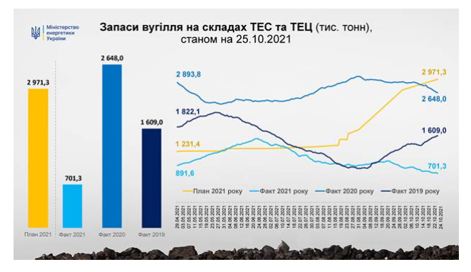 Цитата (Arqus @ Сегодня, 07:04) "Киевтеплоэнерго" отмечает, что выгоднее производить тепло и электричество на угольных блоках, однако низкие запасы угля создают угрозу для прохождения зимы. В этих условиях ТЭЦ, которые работают на газе, были вынуждены остановить работу из-за убыточности. По состоянию на 25 октября запасы угля на складах ТЭС и ТЭЦ почти в четыре раза ниже запланированных объемов. Цитата Согласно сообщению ведомства, запланированный на 2021 год объем угля составляет 2 971,3 тыс. тонн. По состоянию на 25 октября 2021 года запасы угля на складах ТЭС и ТЭЦ составили всего 701.3 тыс. тонн. В 2020 году запасы угля составили 2,648,0 тыс. тонн. В 2019 году запасы составили 1 809,0 тыс. тонн. ![]() https://www.unian.net/economics/energetics/...jM1MTU4ODI4LjEx -------------------- Ценность любого оружия определяется успешностью его применения и готовностью к использованию в нужном месте и в нужное время.