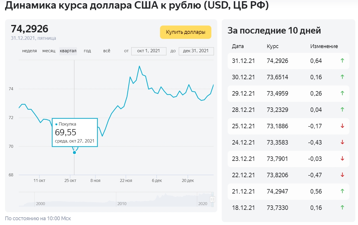 Доллар меньше семидесяти рублей был в конце октября.